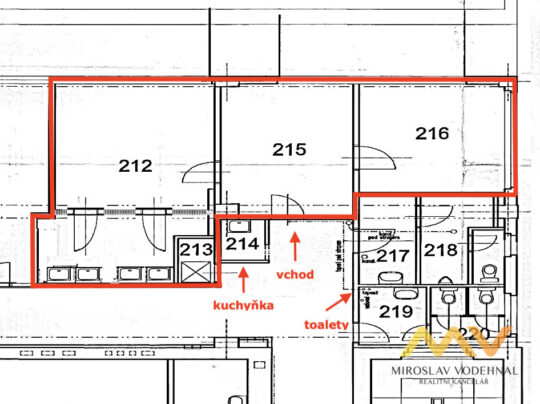 V centru Hradce Králové nabízíme k pronájmu kancelářské prostory o rozloze 62 m2, které se nacházejí ve 2. patře zděné administrativní budovy v centru Hradce Králové. Jedná se o soubor tří průchozích místností se sociálním zázemím umístěných na chodbě před vstupem do kanceláří. K dispozici jsou toalety a malá kuchyňka, případně je možné využít i sprchu a kolárnu. Jednotlivé místnosti jsou o velikosti 31 m2, 16 m2 a 15 m2. V největší z místností jsou umístěné i sprchy, které je možné přestavět a využít prostor třeba jako sklad nebo vlastní kuchyňku. Budova se nachází na velmi klidném místě u nové lávky překlenující řeku Labe směrem k Aldisu a nové budově ČSOB. K dispozici nabízíme jedno parkovací místo za budovou s uzavíratelnou bránou. Vytápění je dálkové, okna plastová, internet zaveden. V místě je kompletní občanská vybavenost. Nájemné 12.382 Kč + energie a služby 4.624 Kč není vyžadována kauce, odměna RK 1x nájemné. Bonusem může být zvýhodnění na nájemném (9.802 Kč/měsíc) v případě členství u Krajské hospodářské komory. Uvedené ceny jsou bez DPH. K dispozici od 1. 6. 2026.
